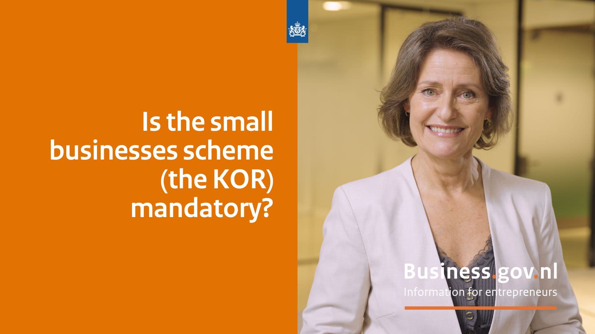 FAQ FAQ- FAQ: Is the small businesses scheme (the KOR) mandatory?- Do you want to have fewer administrative obligations? You may qualify for the Small Businesses Scheme (KOR). Watch this video to see what the requirements are. Watch now00:52