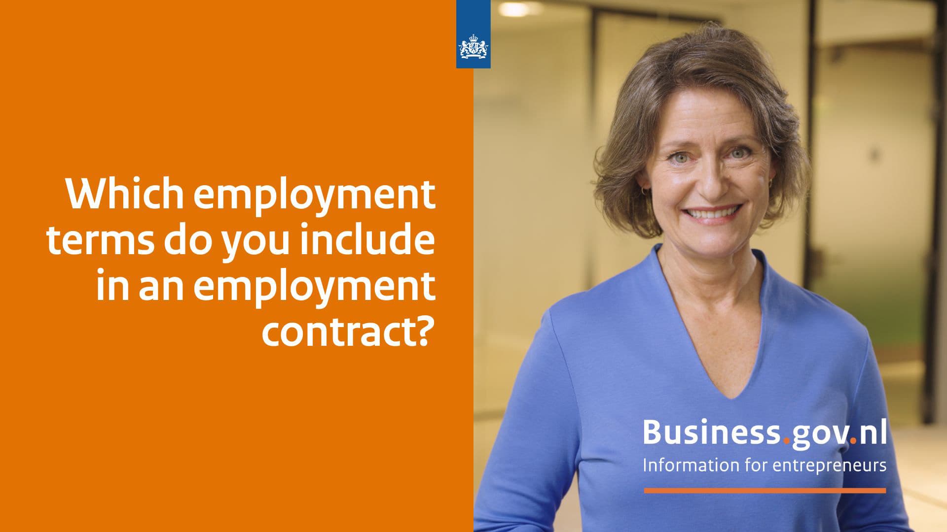FAQ FAQ- FAQ: Which employment terms do you include in an employment contract?- Are you hiring staff? Consider employment conditions such as salary and pension. Watch this video about determining employment conditions. Watch now01:02