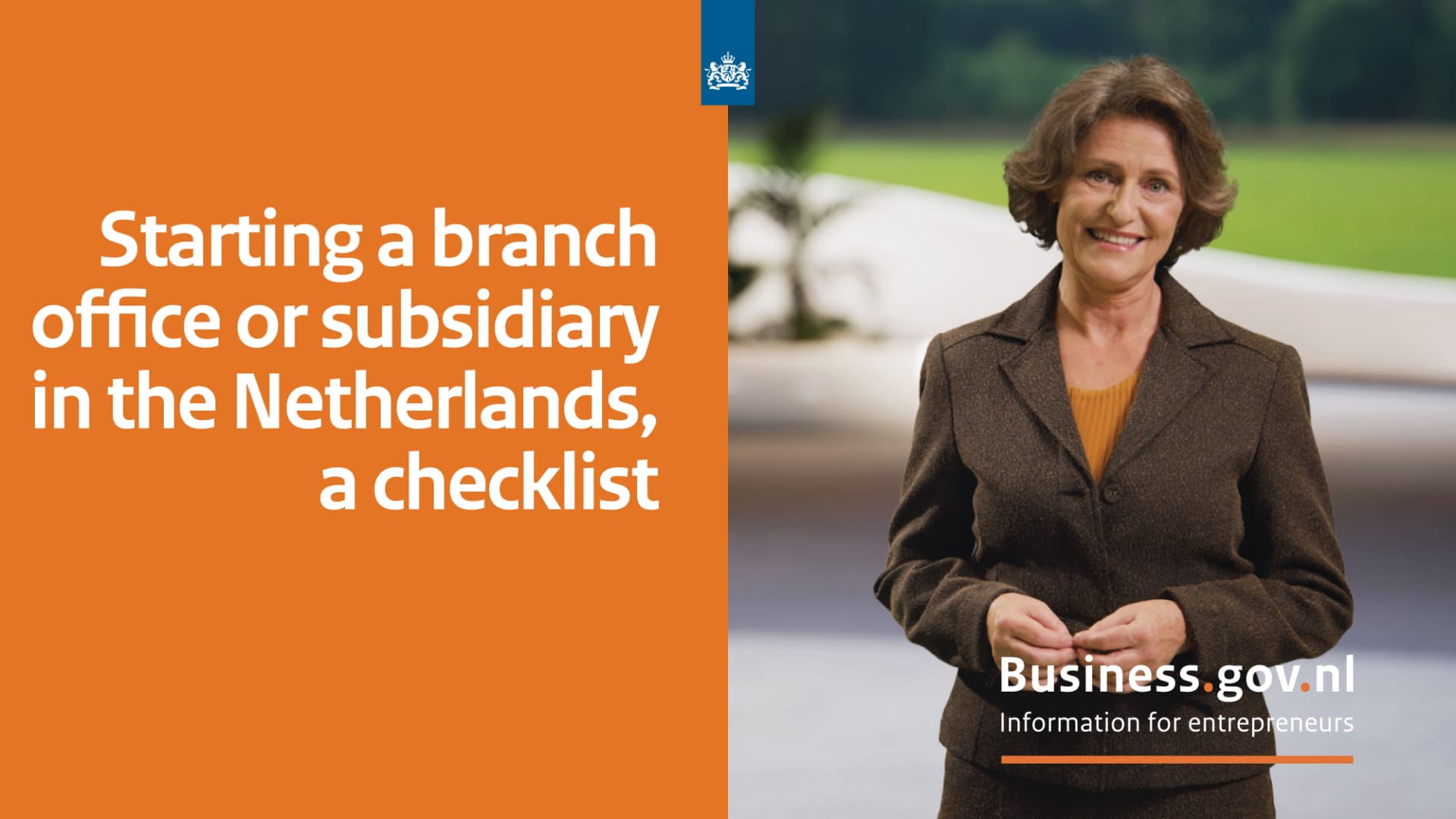 Checklist Checklist- Video: Starting a branch office or subsidiary in the Netherlands, a step-by-step plan- Are you thinking of opening a branch or subsidiary in the Netherlands? This video lists the pros and cons of each option. Watch now05:49