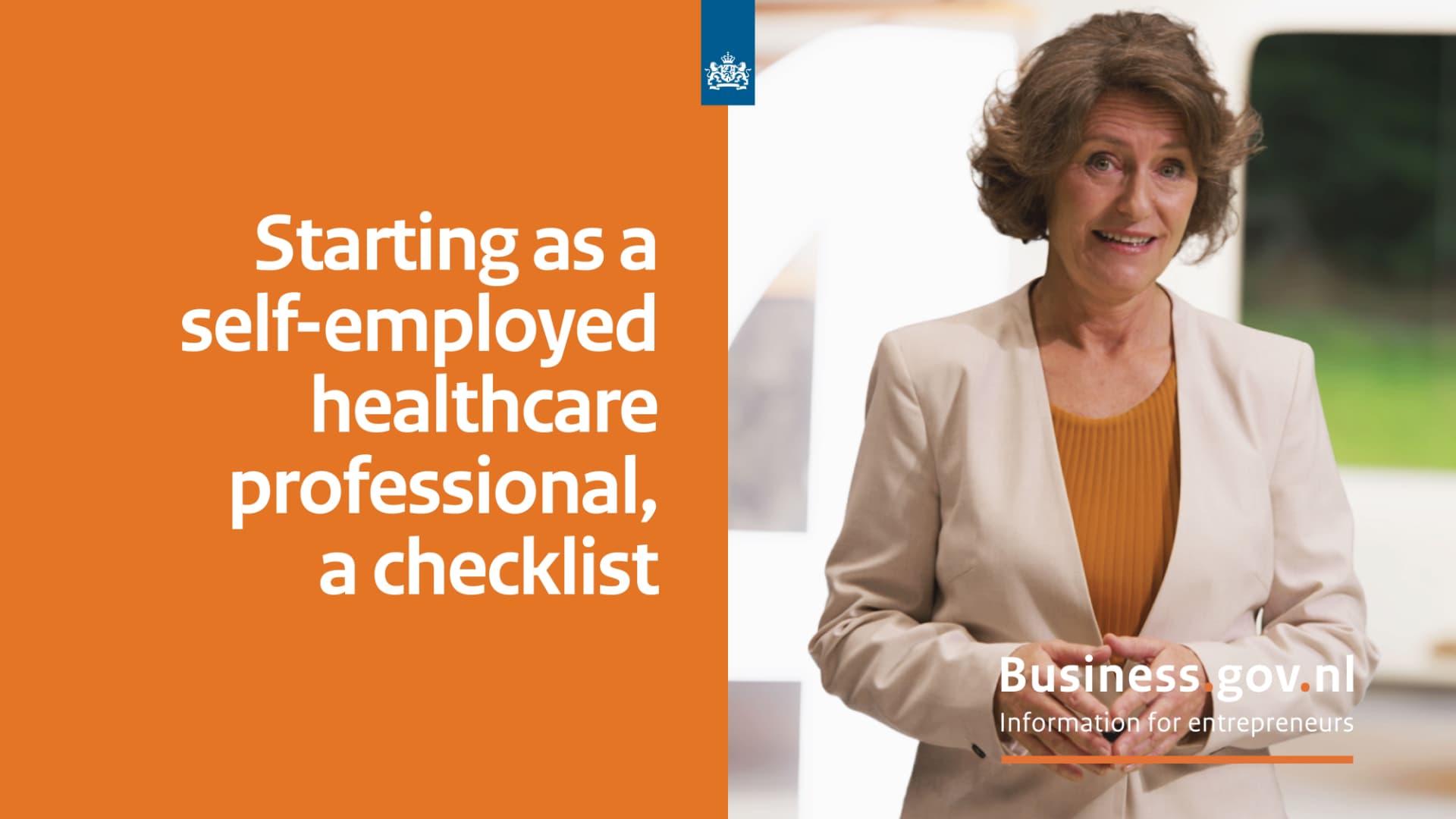 Checklist Checklist- Video: Starting as a self-employed healthcare professional, a step-by-step plan- Do you want to get started as a self-employed healthcare professional? Watch the video to see how to go about it. Watch now04:59