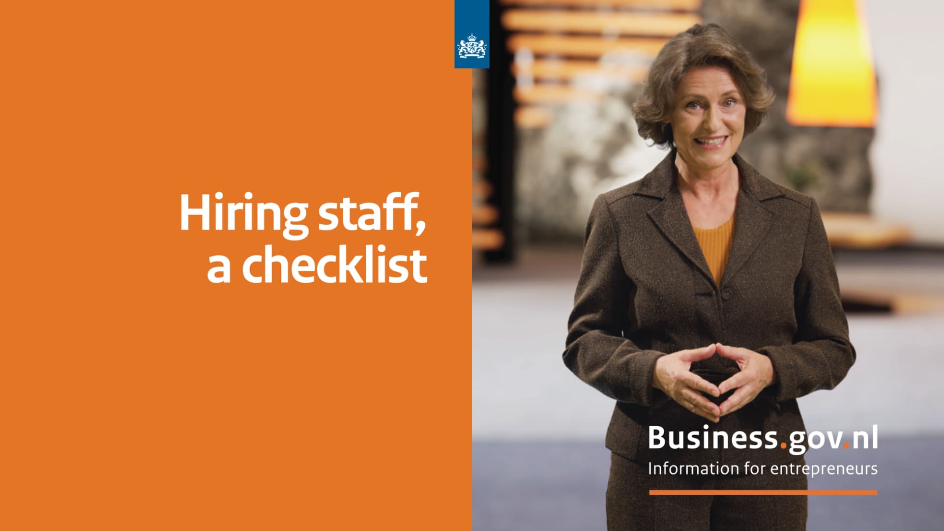 Checklist Checklist- Video: Hiring staff, a step-by-step plan- Do you want to hire your first staff? This video tells you which steps you need to take. Watch now05:14